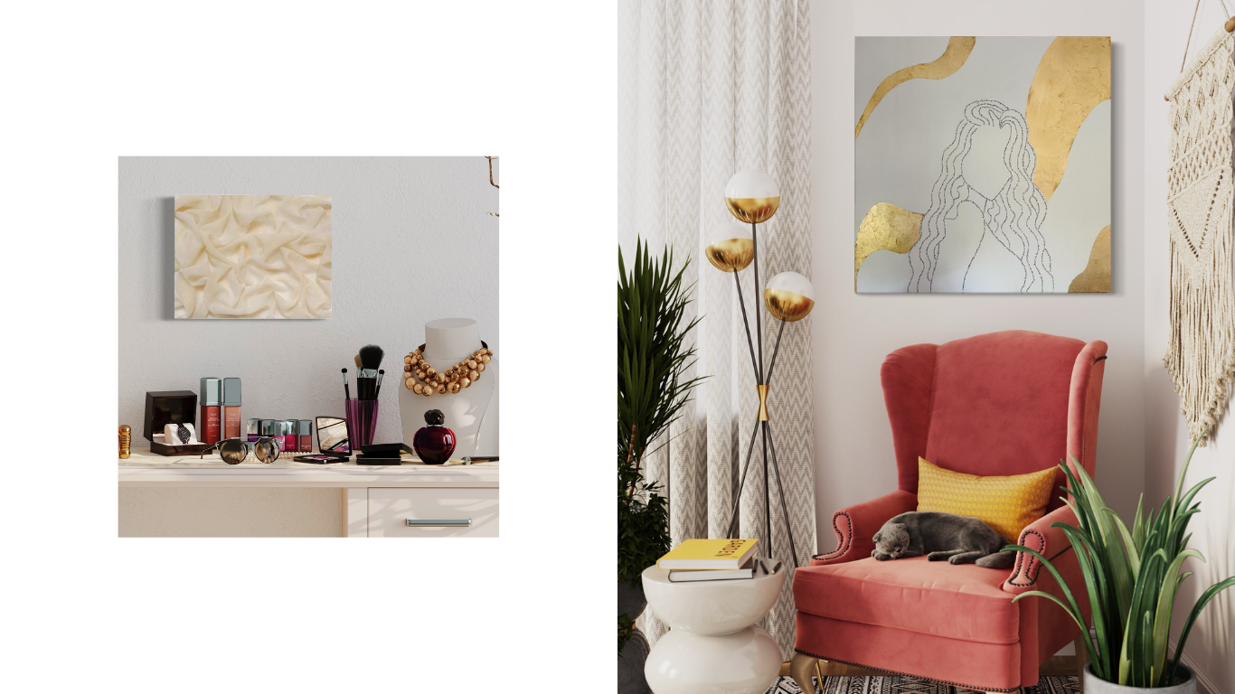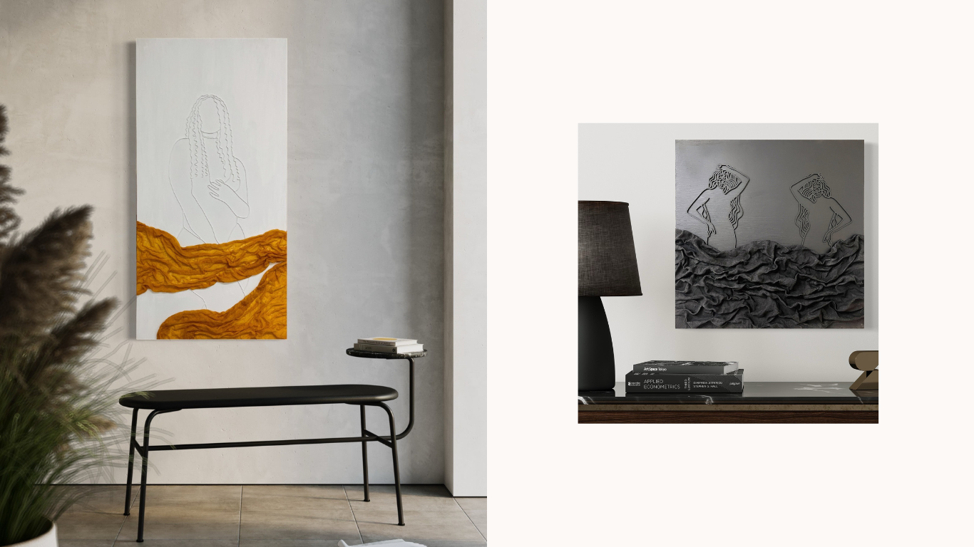 a collection of works where I use fabric to honor my family’s longtime connection to textiles. My grandma has been sewing for 73 years and my aunt has a luxury draperies business in South Carolina. Now, I use the same fabric they’ve used to create work that inspires, celebrates and empowers women.